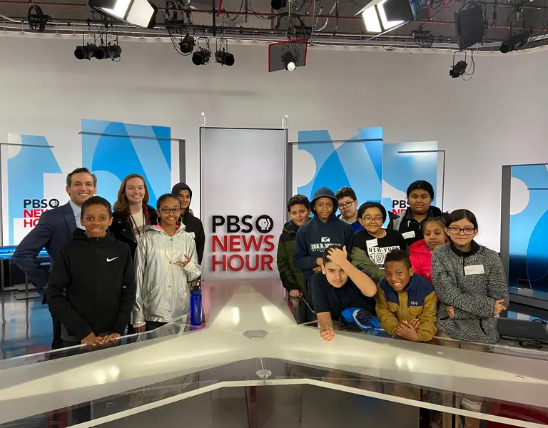 Prior to arriving to the NewsHour studios, the students participated in a pre-trip lesson in the classroom led by Senior Education Manager Fareed Mostoufi. The lesson focused on key terms that would later be applied during the hands-on workshop at WETA Studios, including "journalist," "news," "underreported story," and "outlet."