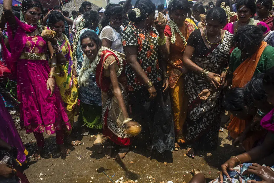 In May 2014, Pulitzer Center grantees Sami Siva and Michael Edison Hayden visited the Koovagam religious festival in Villupuram, India. The festival is the largest gathering of transgender women in India. Siva captured the daily lives of these women, who live and work on the margins of Indian society.