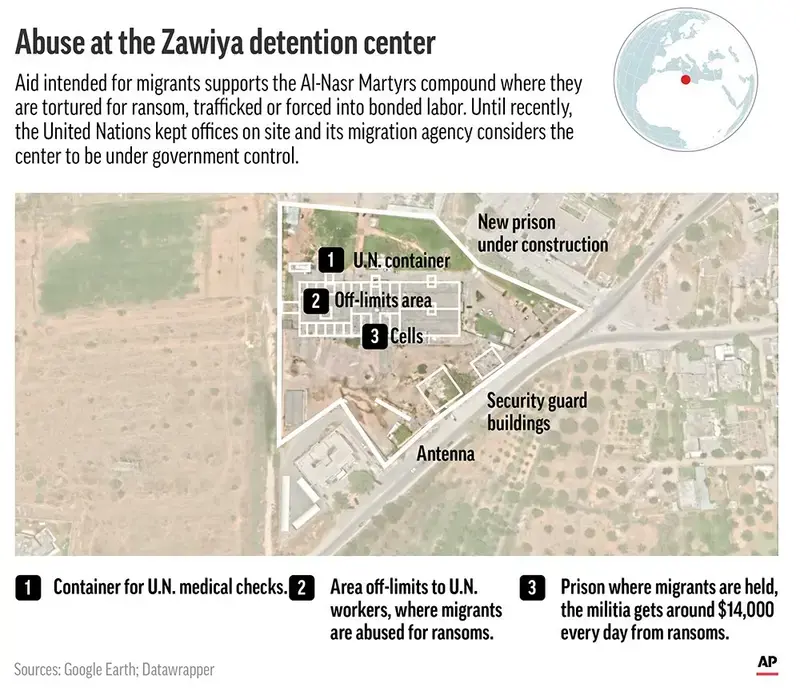 The militias torture, extort and otherwise abuse migrants for ransoms in detention centers under the nose of the U.N., often in compounds that receive millions in European money, the AP investigation showed. Many migrants also simply disappear from detention centers, sold to traffickers or to other centers.